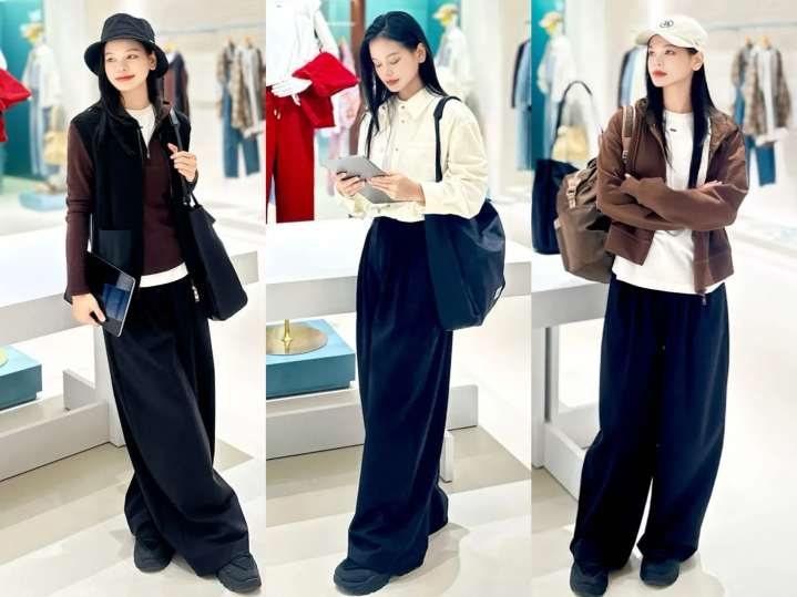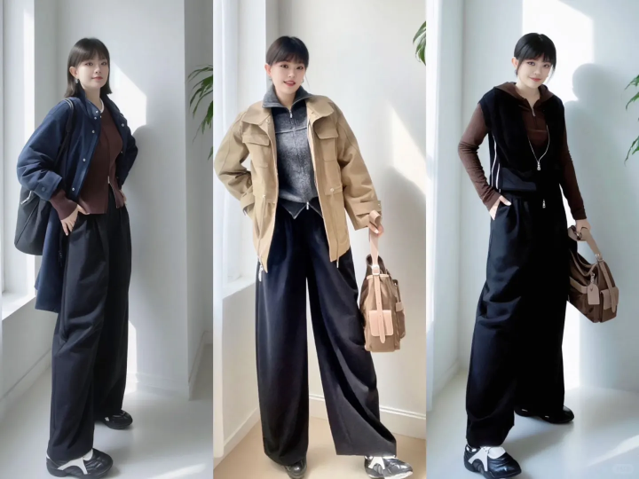 最百搭的无疑是玄色阔腿裤了,无论是西裤依然恬逸裤,玄色皆自带百搭属性,基本上不错适配任何外衣,只需要凭证我方的形体类型去采纳相应的搭配即可,基本上本着同色系搭配,大要顺色搭配皆不会出错。
