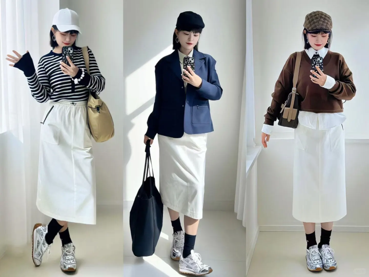 白色半身裙自己就格外百搭,一衣多穿更是不在话下,采纳不同的单品搭配,气质也会多变,与诟谇条纹衫搭配,是簇新又文艺的节约风,与深蓝色小西装组合是靓丽的学院风,而咖啡色毛衣叠穿白衬衫,再配白色半身裙,IM体育官网则愈加减龄俏皮。