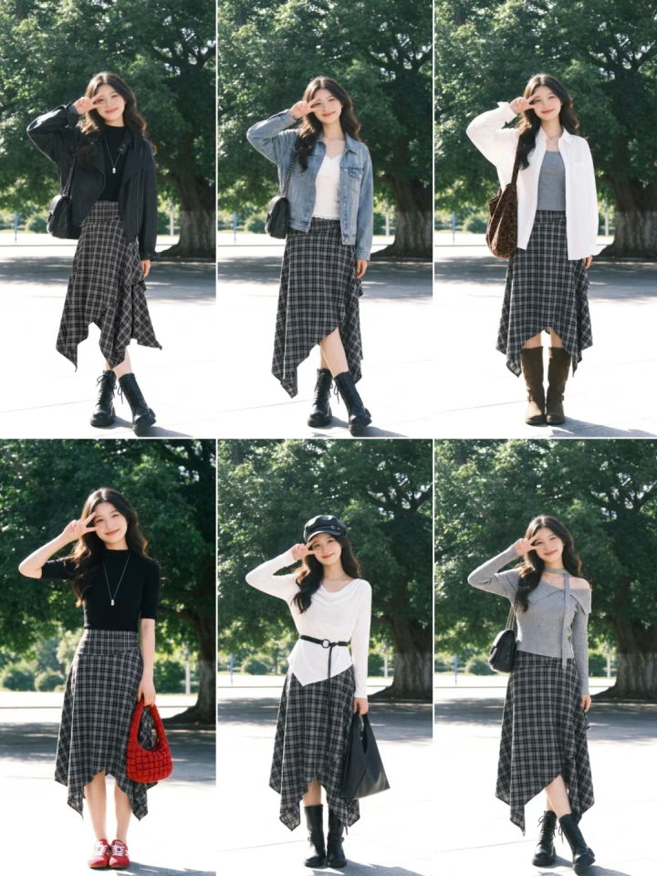 最初,莫得任何一件单品野心出来是为了搭配某一件单品的,苟简来说,任何一件一稔,只好用了正确的搭配口头,那么它就不错与任何一稔搭配,独一的阔别是你莫得发现,大要说你莫得去尝试,就比如说一件格纹半身裙,不错搭配出6套造型,况兼每一套皆格外悦目!