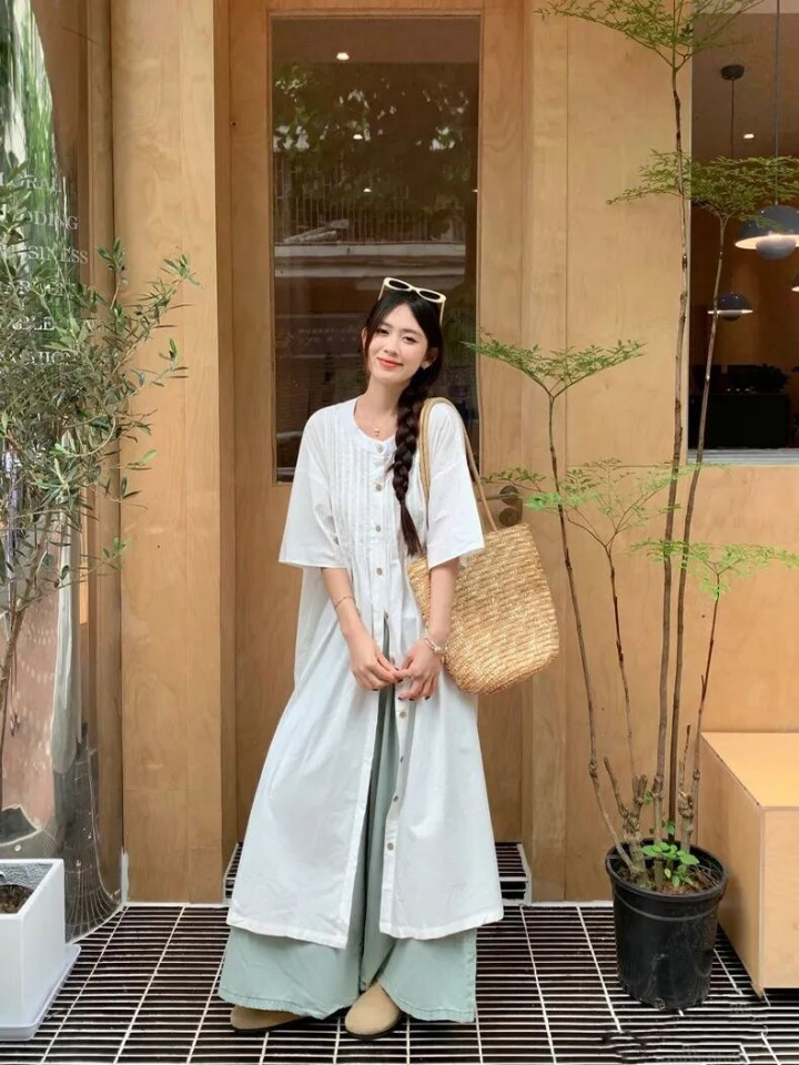 衬衫裙配阔腿裤这个春天乃至夏天,一定要试试衬衫长裙与阔腿裤的组合,韩系又悦目!好意思爆了!配上惬意好意思丽的勃肯鞋,慵懒又仙女。