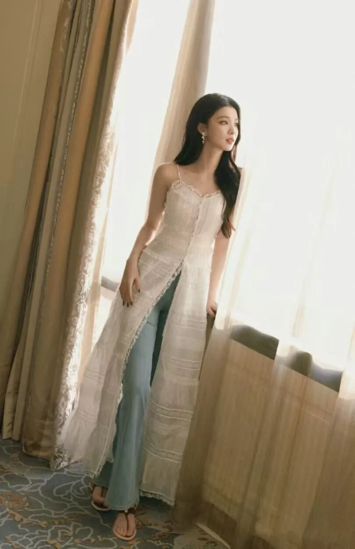 吊带开叉长裙配直筒牛仔裤将传统与当代圆善交融,柔好意思的蕾丝、灵动的开叉、叠穿的巧念念。遮肉显瘦,IM体育官方网站洋气减龄,无不彰显气质与魔力。