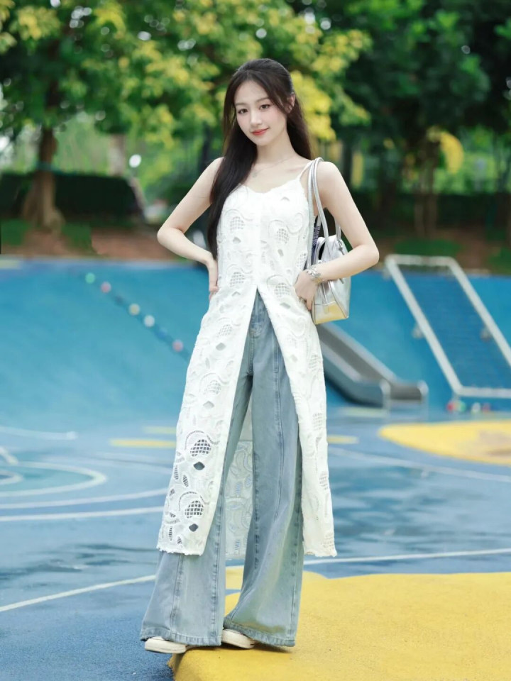 小白裙配牛仔裤小白裙与牛仔裤的组合,险些就曲直主流穿搭,开发穿搭新念念路,外出拍照超出片!