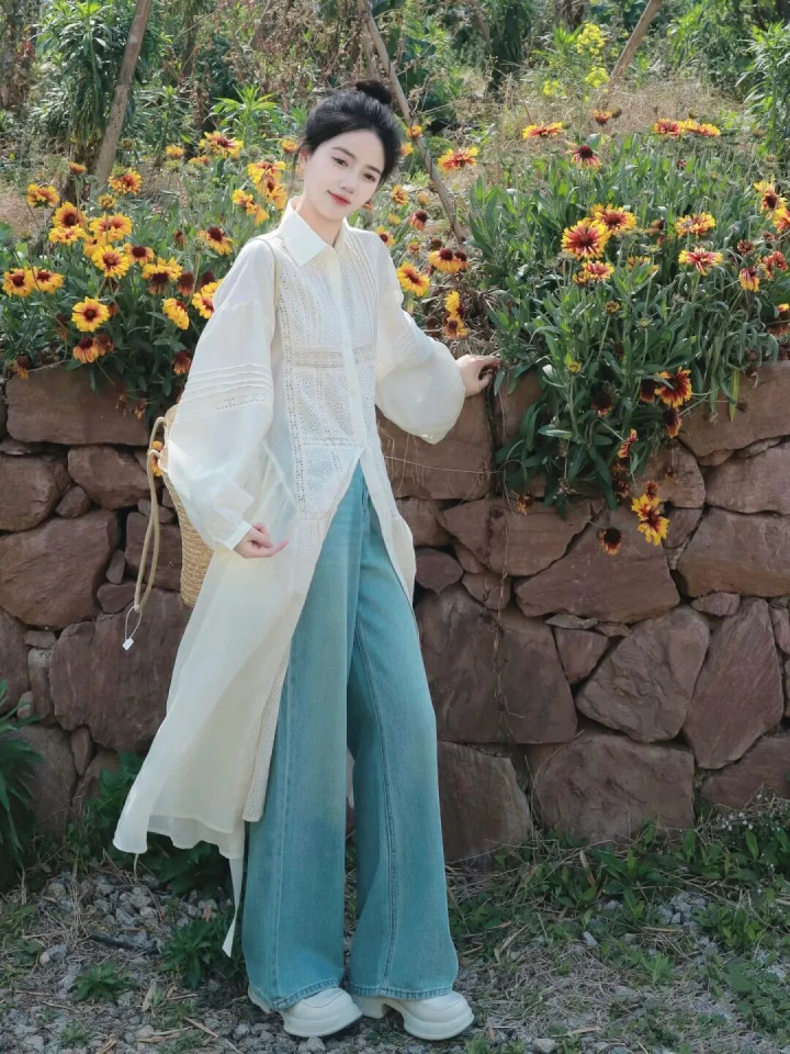 连衣裙配牛仔裤我发现:粗疏美艳的春日里,这种连衣裙和牛仔裤的确超高配!米白色衬衫连衣裙,凉爽又柔顺,简分工净,不痛楚的高档感穿搭!