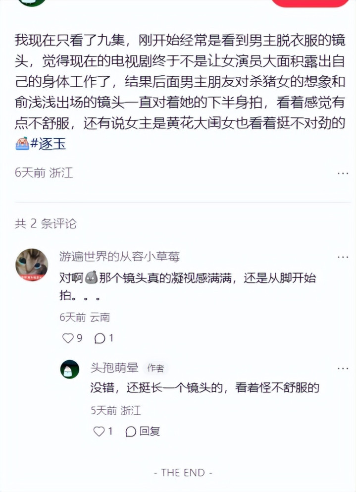 除了这种直白的镜头外,多样原著里莫得的剧情也让不雅众看得很莫名,照旧转头娇妻套路,往男扫视角去引了。