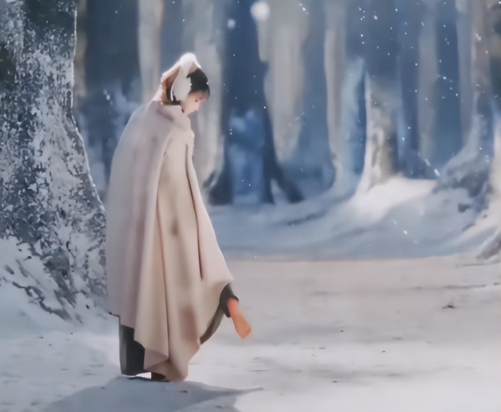 要是导演仅仅思卓越她在雪地里赤脚走,走的很劳苦,也不会让东谈主看得怪怪的,可这镜头接下来的转场即是,男二号在背面的马车里扫视着她。