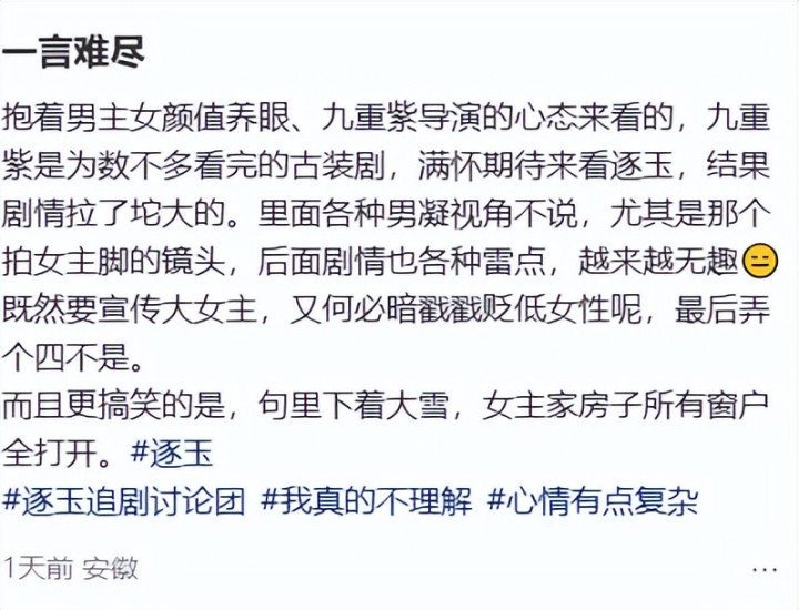 其实,张艺谋并不是这段时间惟一因为男凝问题翻车的,开年的大爆剧《逐玉》,也照样陷在男凝争议里。