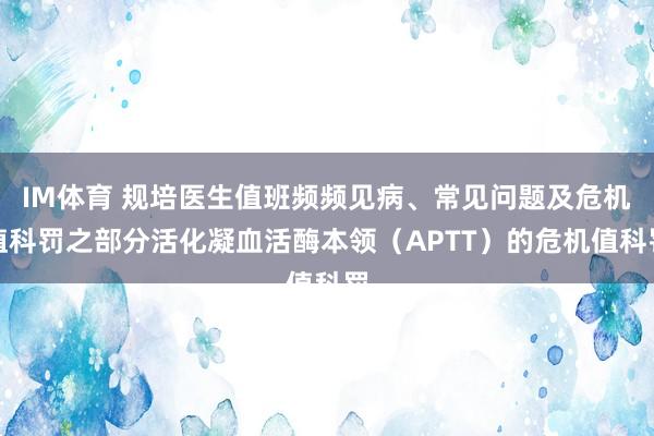IM体育 规培医生值班频频见病、常见问题及危机值科罚之部分活化凝血活酶本领(APTT)的危机值科罚