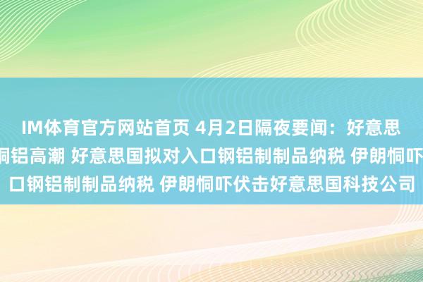 IM体育官方网站首页 4月2日隔夜要闻:好意思股收高 油价下降 黄金铜铝高潮 好意思国拟对入口钢铝制制品纳税 伊朗恫吓伏击好意思国科技公司