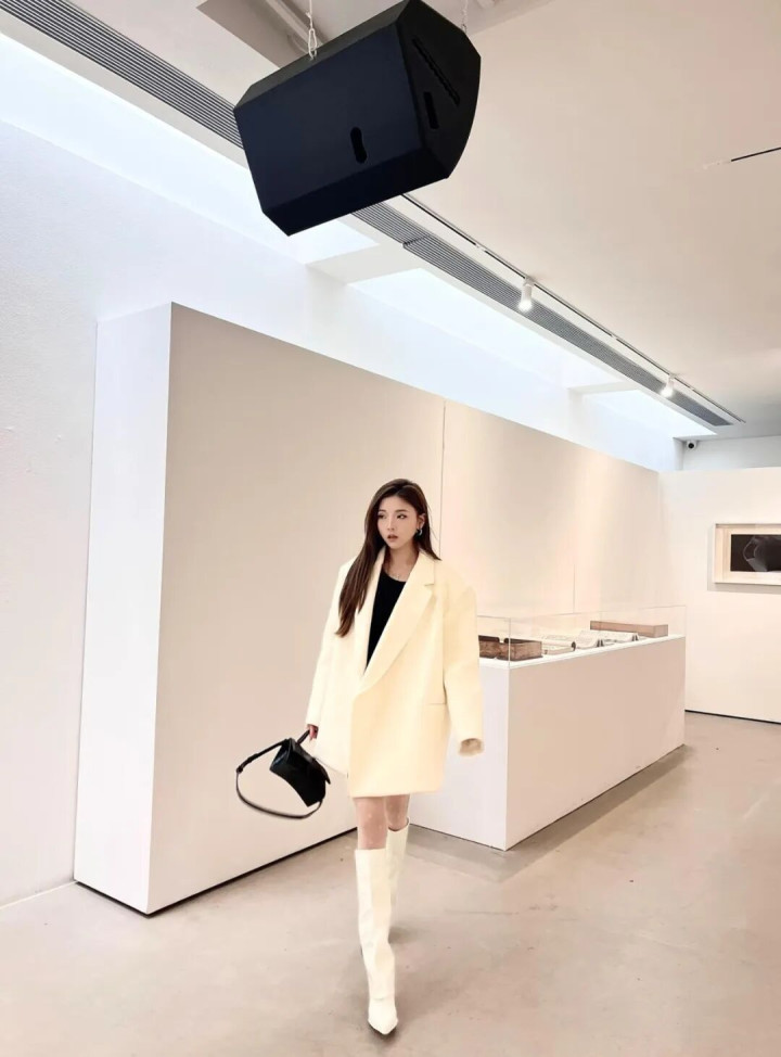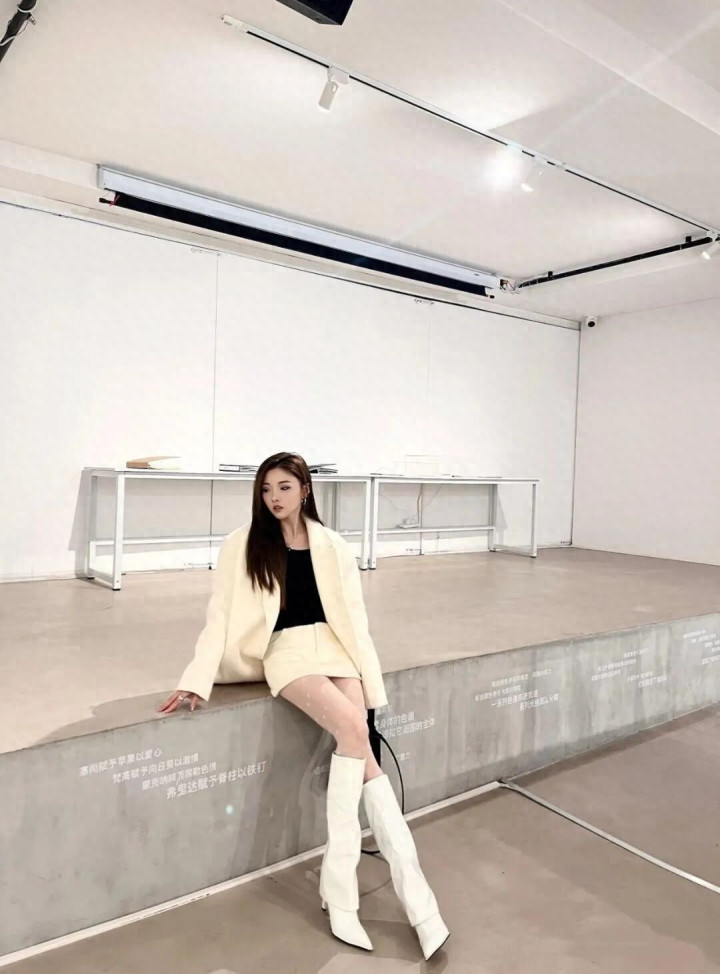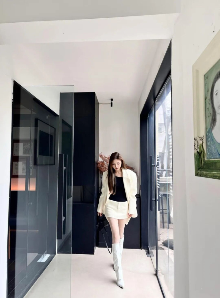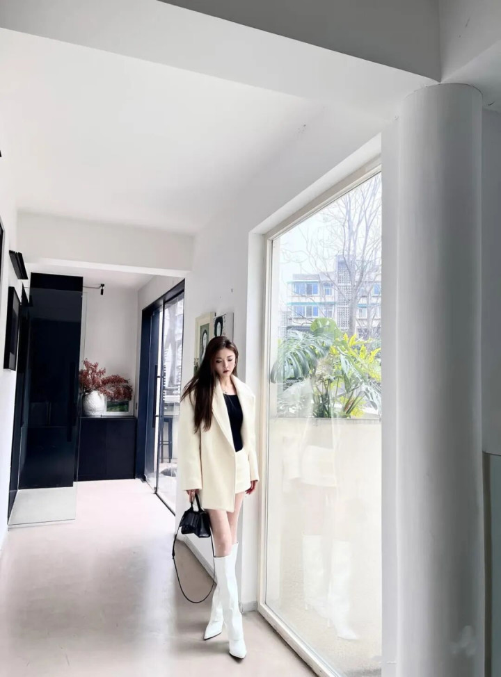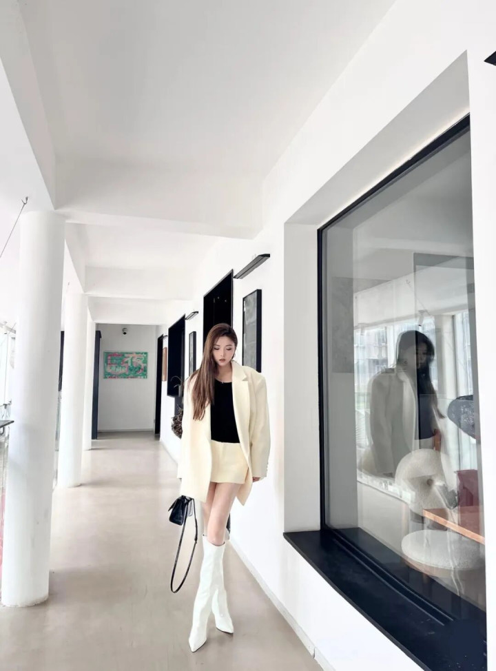 IM体育官方网站 白色西装+白色长靴, 优雅干练显气质