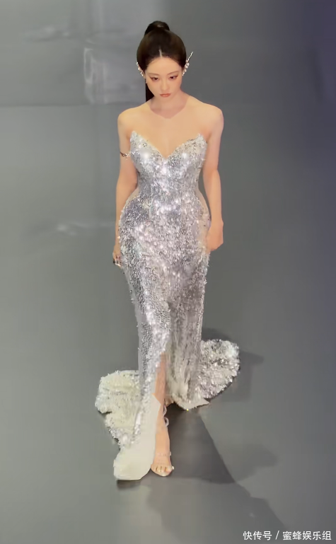其中一款亮片鱼尾裙造型,更是将绚烂与酷飒竣工会通,尽显唯妙肉体弧线。鱼尾裙的版型贴合体态,精确勾画出纤细腰腹与畅达的腿部线条,身姿唯妙挺拔,优厚的肉体比例一望遍及,莫得过剩的赘肉,线条紧致畅达,尽显好肉体。鱼尾的裙摆贪图自带优雅氛围感,而美艳亮片又增添了先锋矛头,一柔一刚互相碰撞,让祝绪丹既有着女性的明艳绚烂,又有着飒爽利落的酷感,透彻豪迈了行家对她的固有印象,先锋适配度拉满。