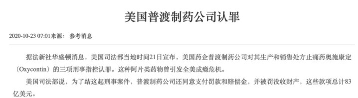 最终,2020年普渡制药认罪,罚金83亿好意思元,告示收歇。