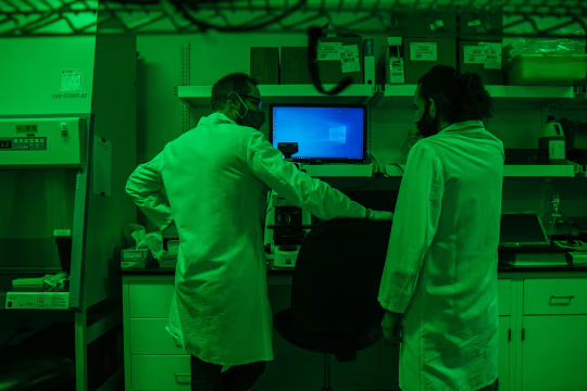 2021年,Viridos实验室的科研东说念主员正在显微镜下不雅察细胞。该公司前身为合成基因组公司。