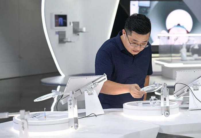不雅众在海南自贸港要点园区——博鳌乐城海外医疗旅游先行区不雅看“永不斥逐”海外立异药械展(2025年10月27日摄)。新华社记者蒲晓旭摄