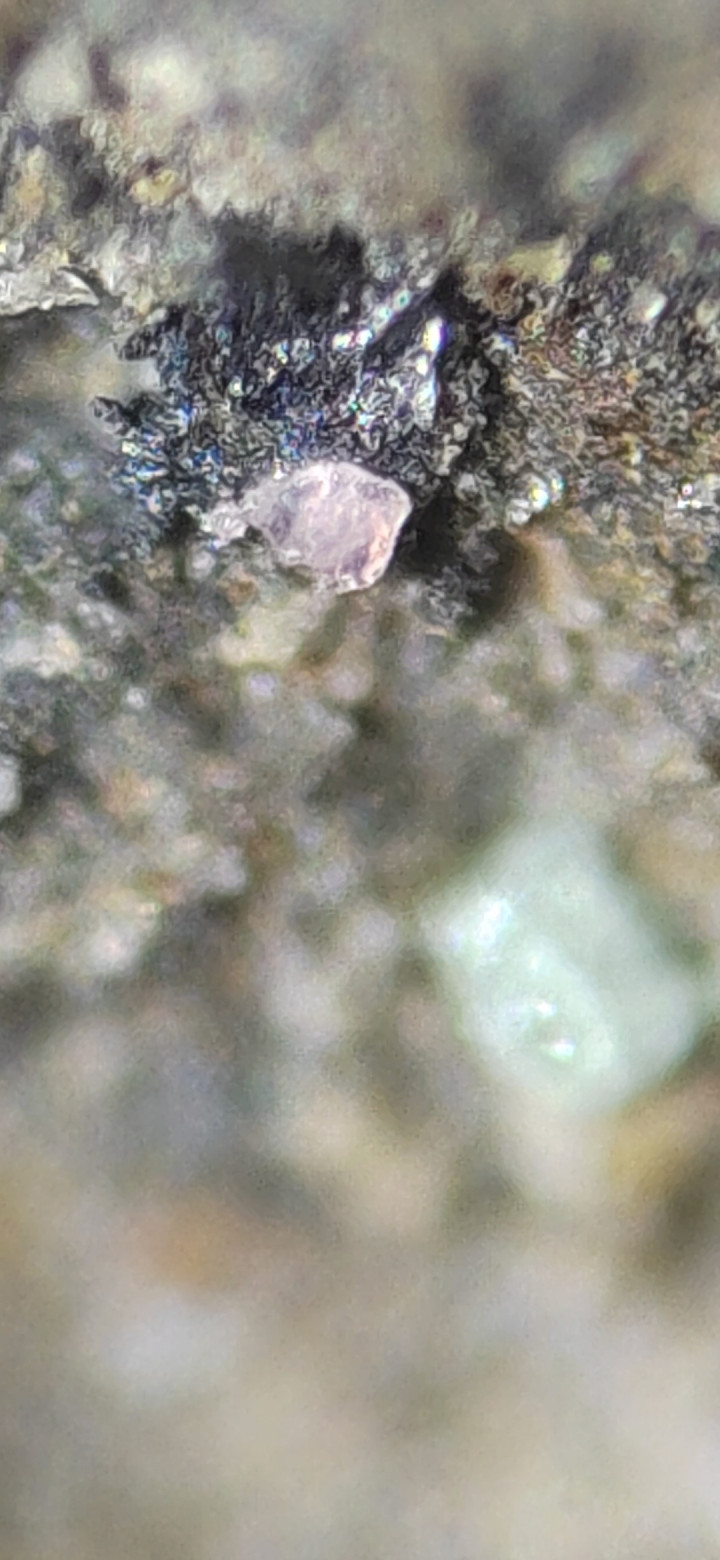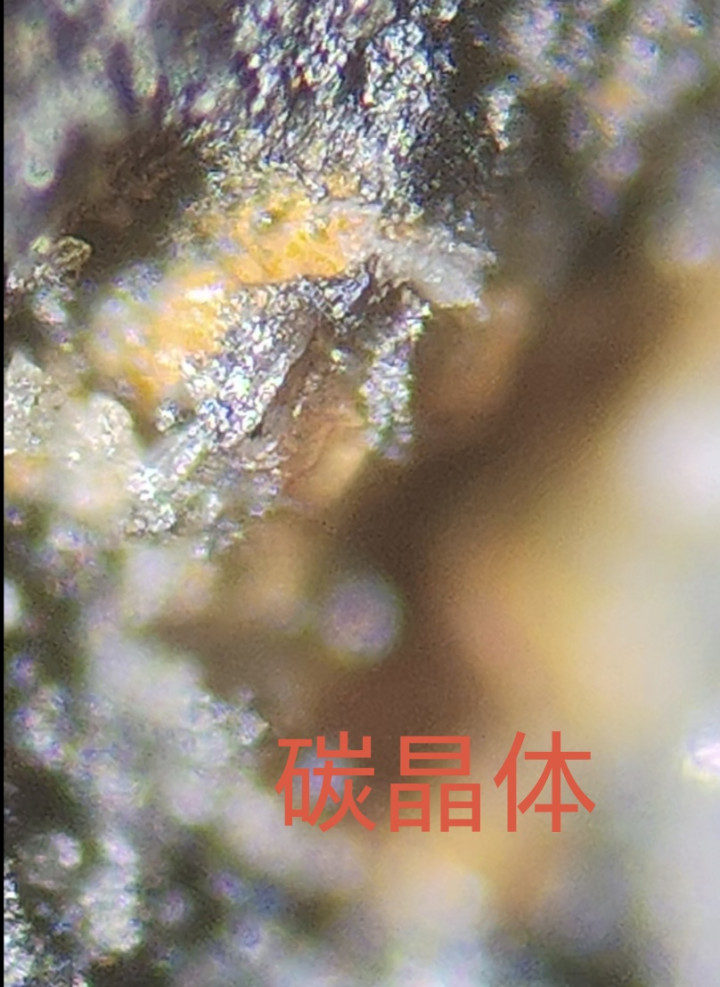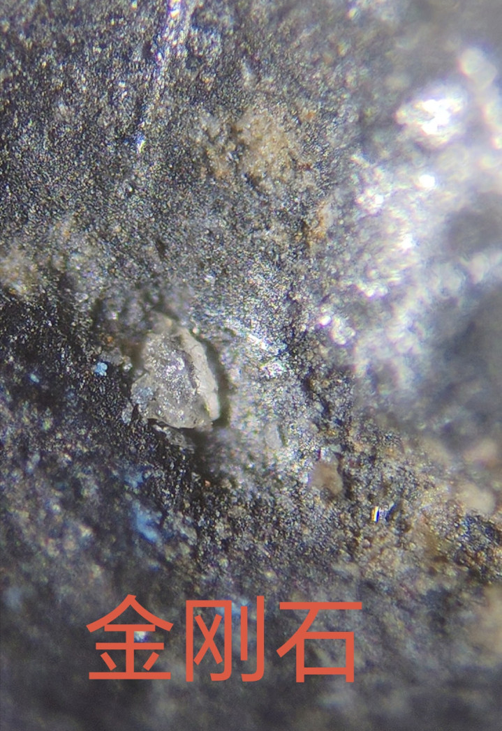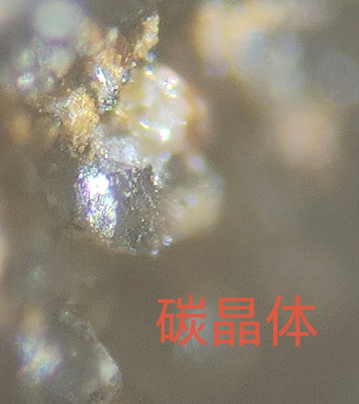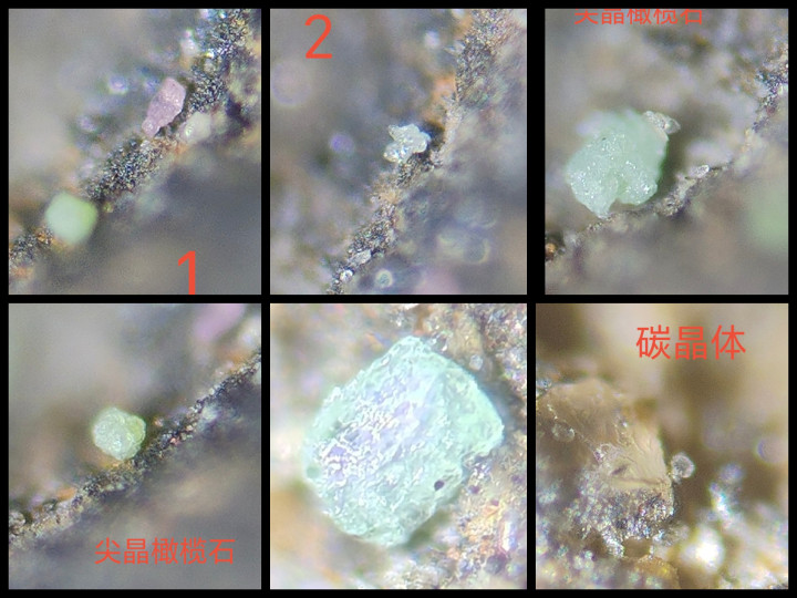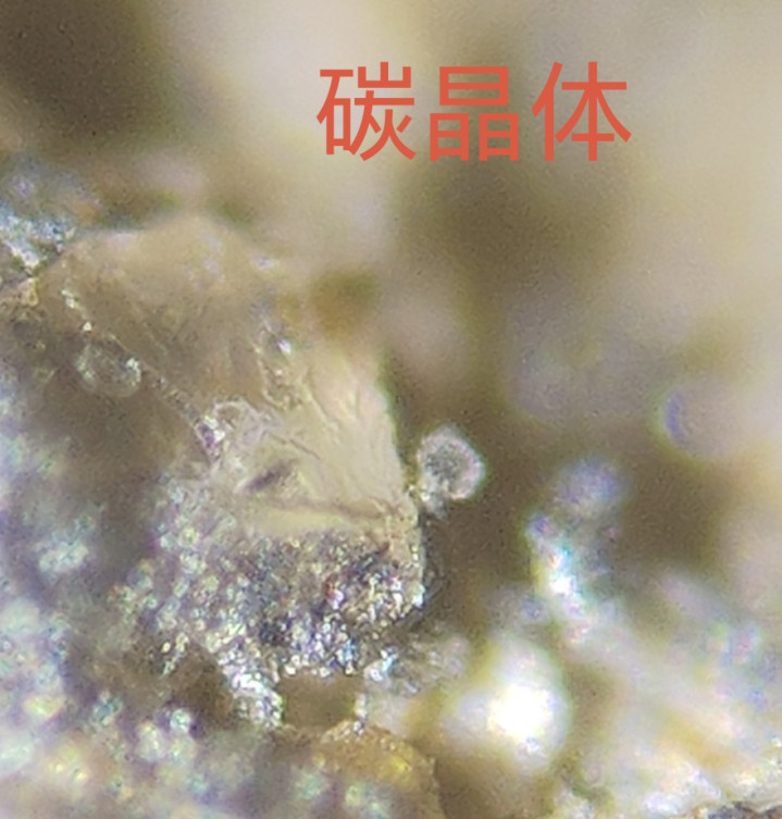 底下是高压极速淬火冷却后粘附在撞击口的高压矿物晶体。