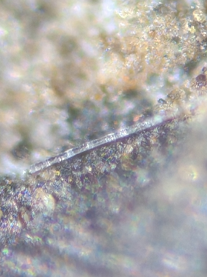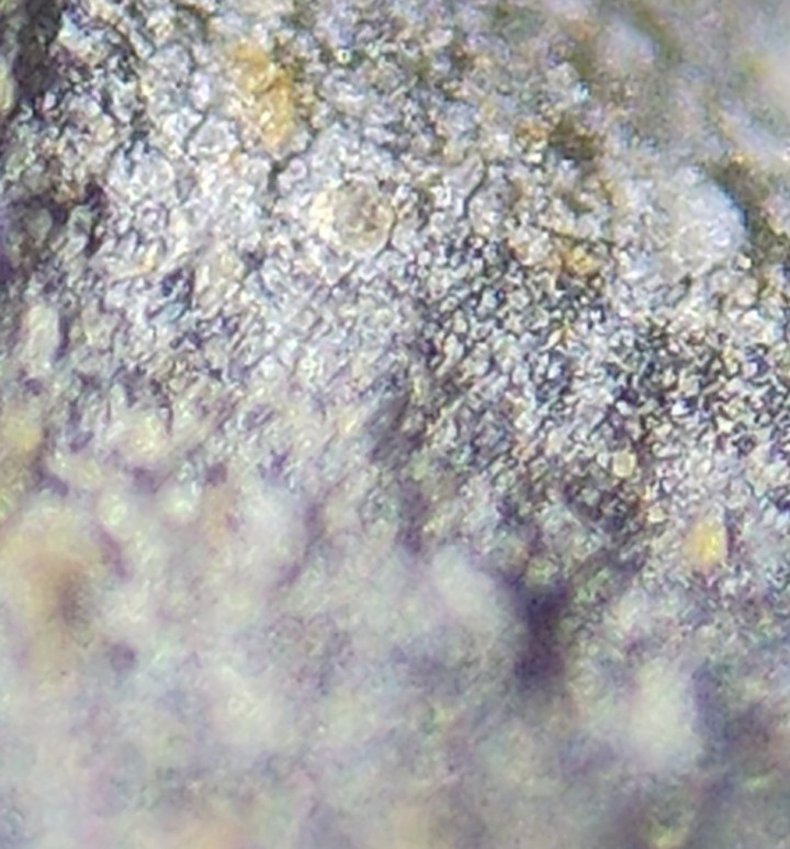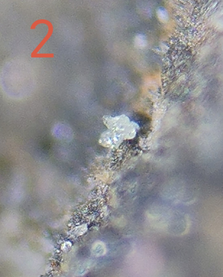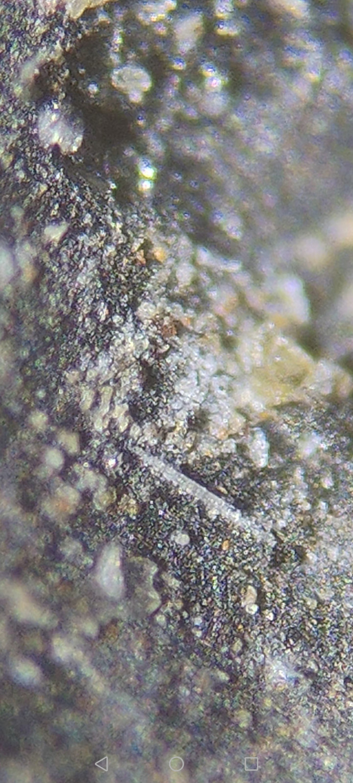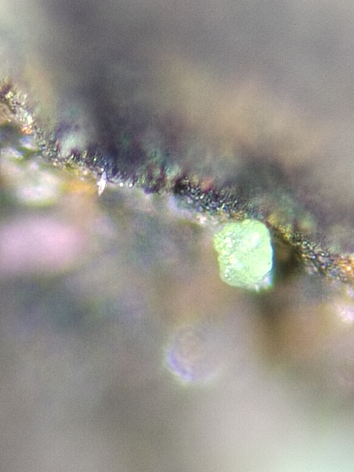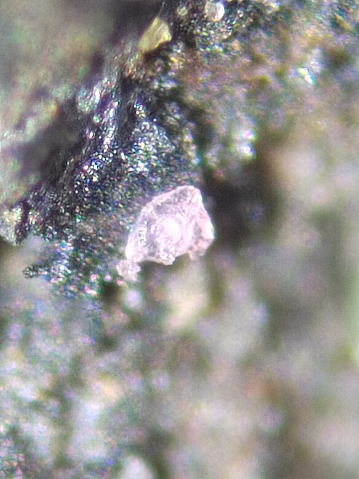 底下是高压极速淬火冷却后粘附在撞击口的高压矿物晶体。