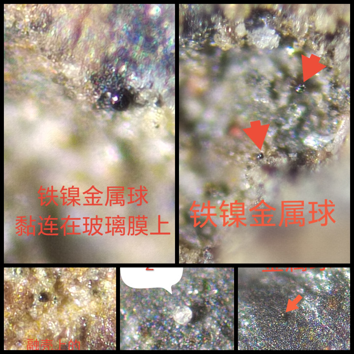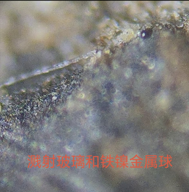 底下是气化液化后极速淬火冷却的铁镍金属球。这些矿物晶体是只好在天体撞击下智商酿成的微米矿物晶体。