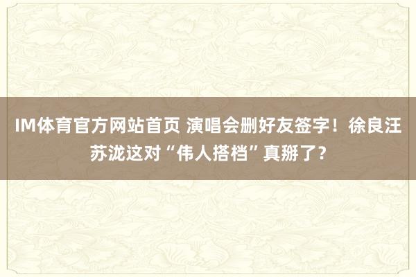 IM体育官方网站首页 演唱会删好友签字!徐良汪苏泷这对“伟人搭档”真掰了?