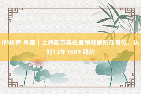 IM体育 早读|上海碳市集往返领域居所在首位,认知12年100%践约